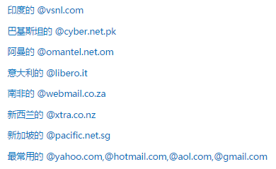 此外针对不同的国家要灵活变换邮箱后缀。